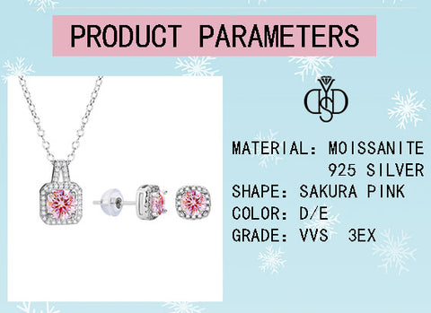 【#120 VIPStreamers】925 Sterling Silver Sakura Pink Moissanite Jewelry Set
