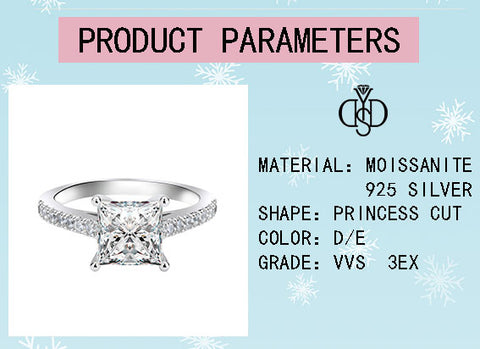 【#46 YSDD】925 Sterling Silver Princess Cut Moissanite Rings