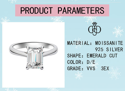 【#52 VIPStreamers】2CT 925 Sterling Silver Emerald Cut Moissanite Rings